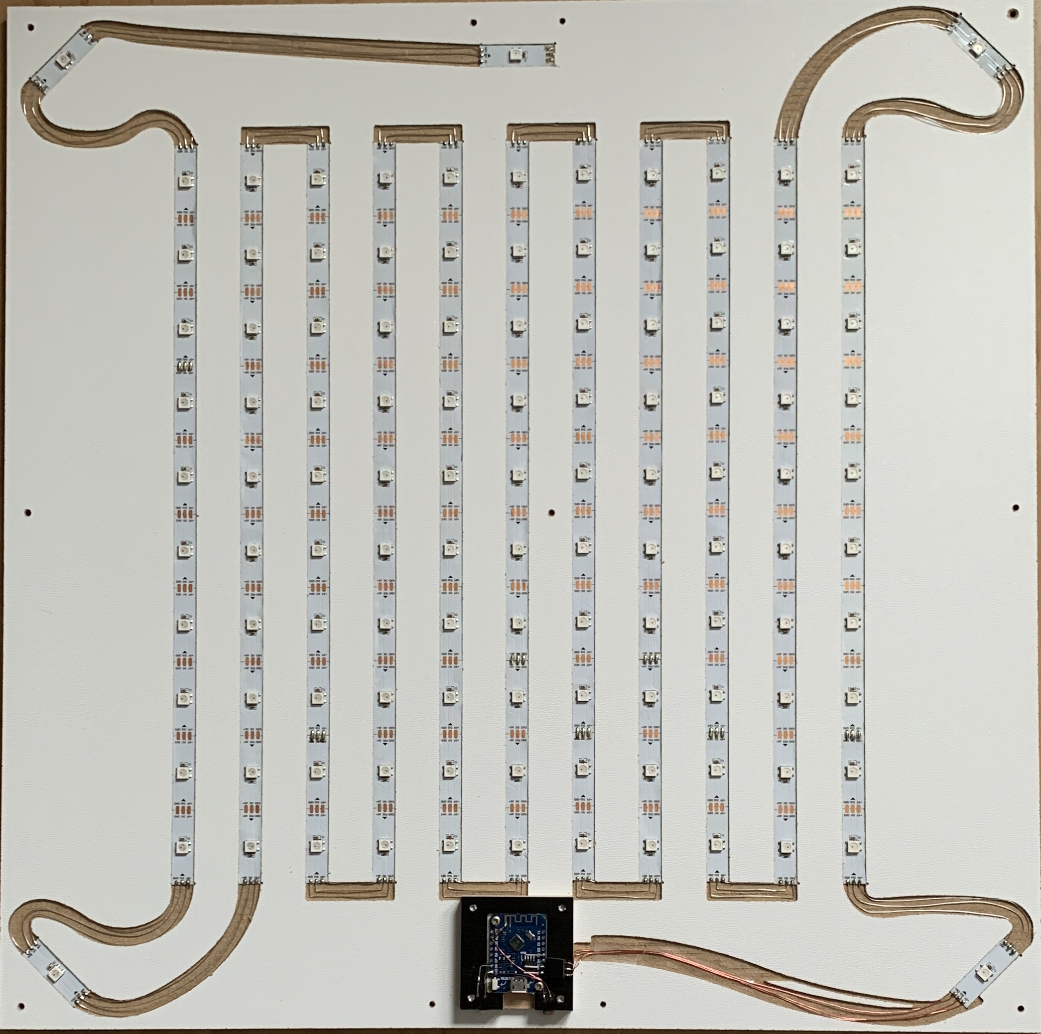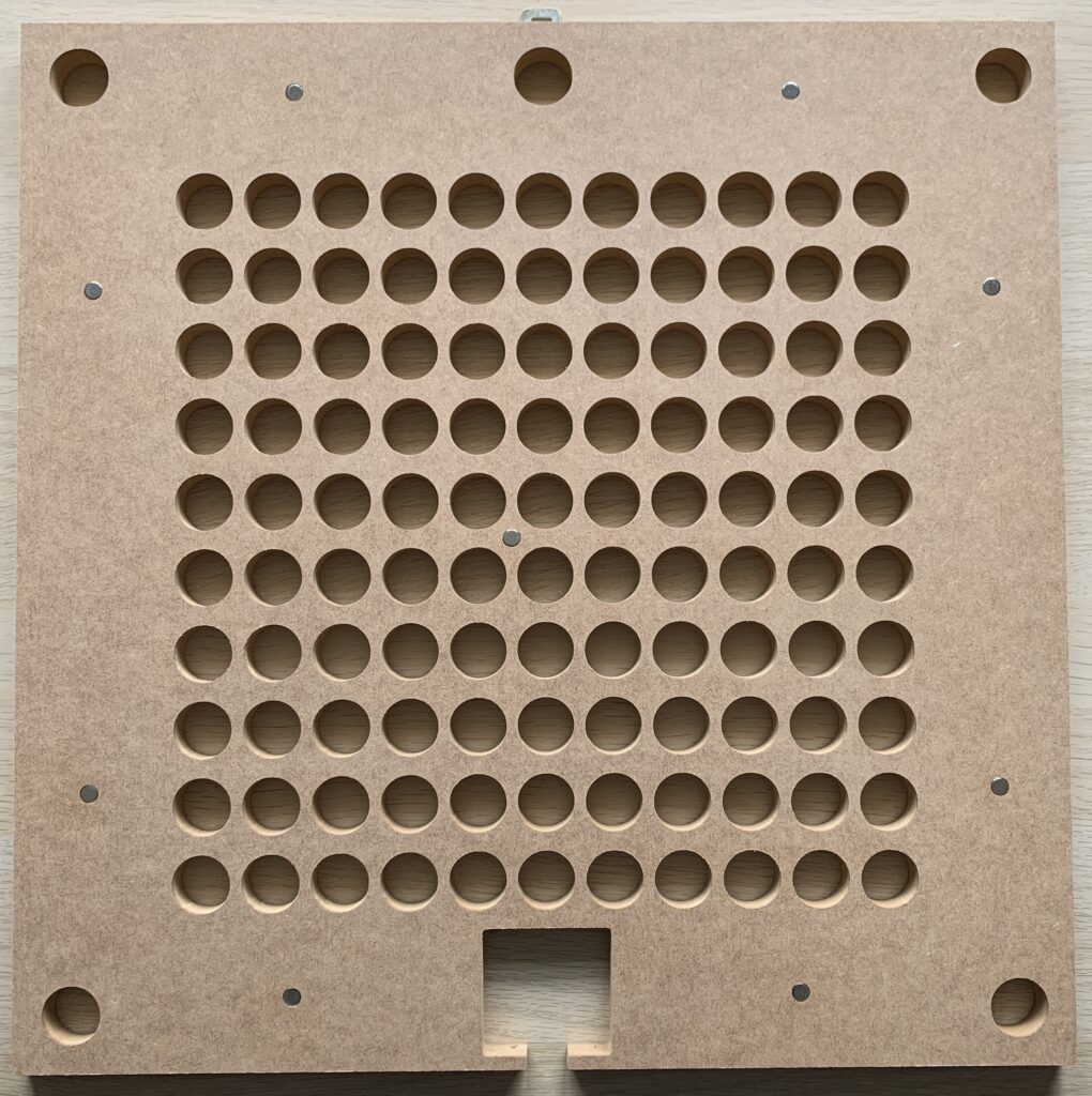 Der Aufbau der Wortuhr besteht aus LED Grundplatte mit LED Streifen und Prozessor sowie dem MDF Leuchtgitter mit Diffusor Folie.